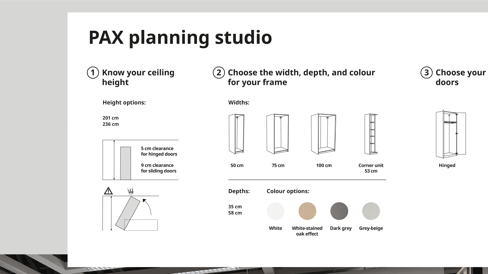 This project involved designing a modular in-store visual planning system to help customers understand and configure IKEA’s PAX wardrobe range. The aim was to present complex product options in a clear and structured way, supporting customers in making confident purchasing decisions within the retail environment.