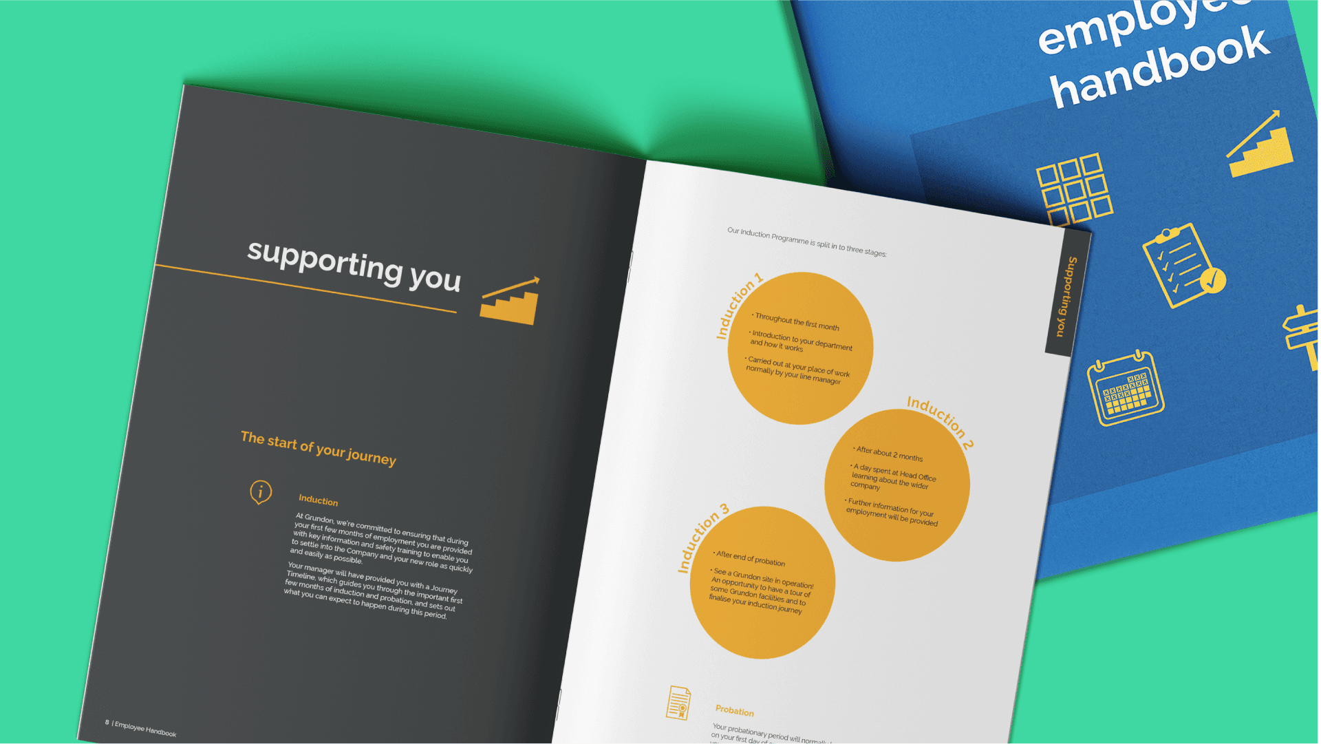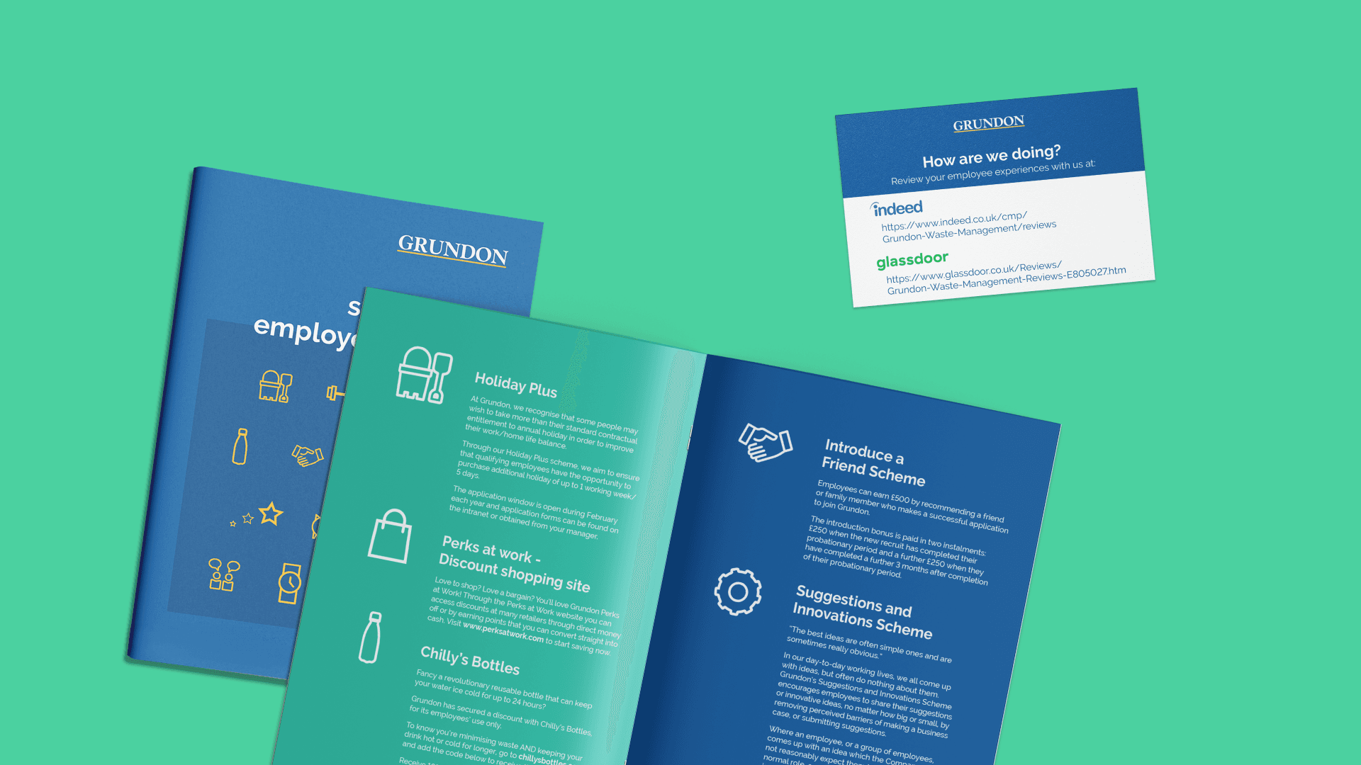 This project involved designing a coordinated set of internal and recruitment publications to improve clarity, consistency, and brand alignment across Grundon’s employee-facing communications. The aim was to bring multiple booklets and documents together into a cohesive publication suite that could function effectively across both print and digital formats.